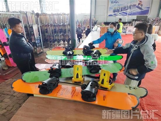 2024年2月12日,滑雪爱好者在伊宁市西郊的快乐星滑雪场选择雪具。