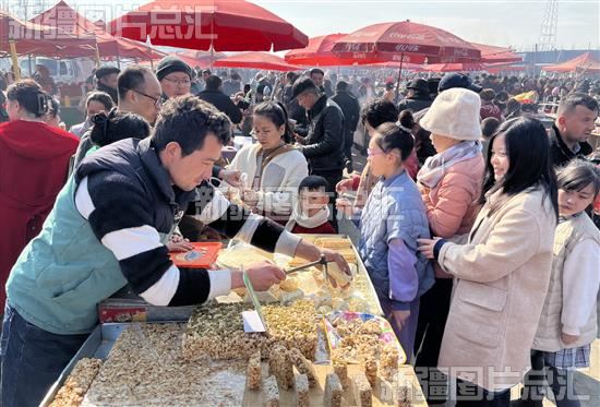 2024年2月11日,游客在喀什市牛羊大巴扎的饮食区选购切糕。