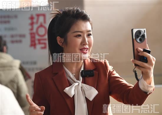 2024年2月23日,媒体工作人员在“春暖农民工”专场招聘会上进行直播宣传。
