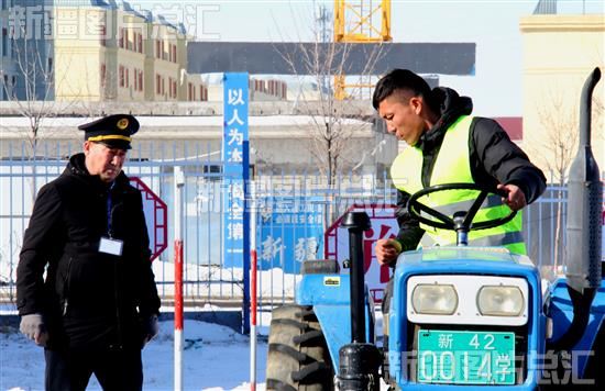2024年2月28日,农机手在裕民县技工学校实训基地参加农用拖拉机驾驶技能考核。