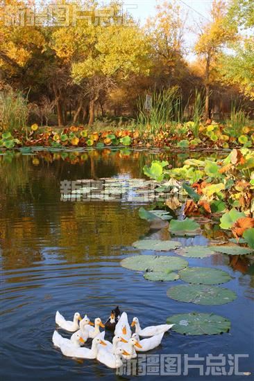 2009年10月中旬,喀什地区泽普县金胡杨风景区秋意正浓,金色的胡杨、绿色的荷塘美景交相辉映,叶尔羌河畔胡杨林呈现出诱人的斑斓秋色,吸引着众多游客前来观光旅游。