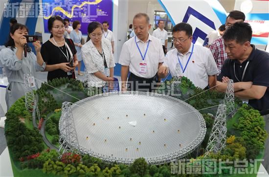2019年8月29日,参会代表在中国科学院展区参观前沿科技成果500米口径球面射电望远镜。