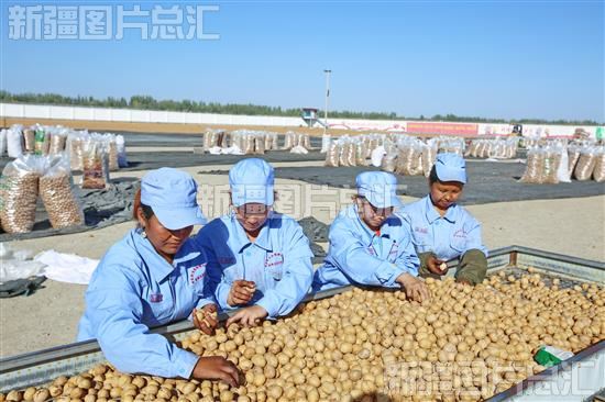 现在正是核桃采摘季节,库车县阿克吾斯塘乡核桃专业合作社正忙着剥皮、洗皮、烘干、加工、分级,280多名农民把核桃卖给合作社后,来到合作社当季节工,收入大大增加其中80%是建档立卡贫困户。