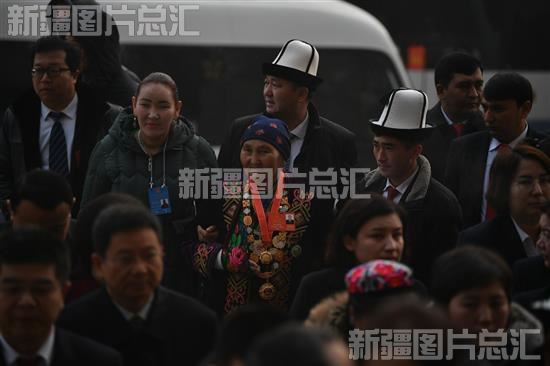 2020年1月6日,自治区人大十三届三次会议在新疆人民会堂开幕,图为会前获得“人民楷模”国家荣誉称号的布茹玛汗·毛勒朵走进会场。