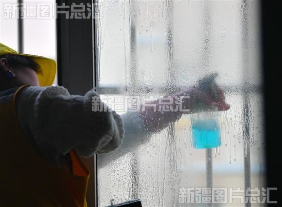 2024年3月1日,新疆帮小弟居家生活服务有限公司员工在用户家擦玻璃。