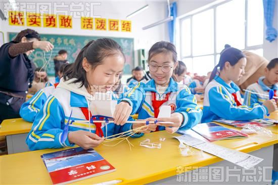 2024年3月1日,学生在科学小课堂上动手制作橡筋动力模型飞机。