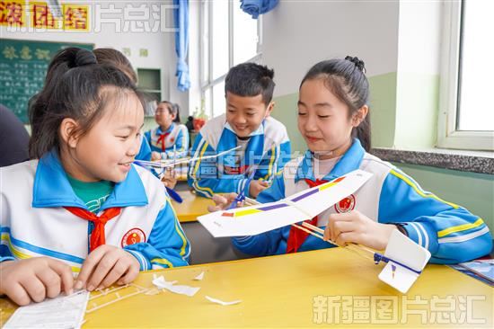 2024年3月1日,学生在科学小课堂上动手制作橡筋动力模型飞机。