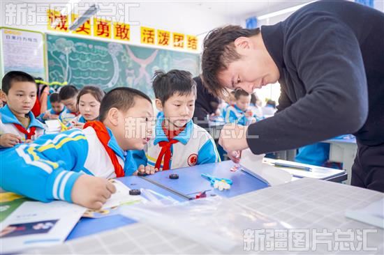 2024年3月1日,在科学小课堂上,老师指导学生制作制作磁力小车。