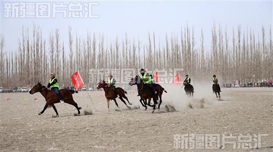 2024年3月2日,骑手在新疆生产建设兵团第二师21团第二届“春归万物生,策马踏新程”赛马节上进行速度赛马。