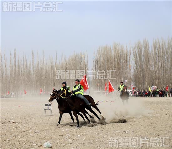 2024年3月2日,骑手在新疆生产建设兵团第二师21团第二届“春归万物生,策马踏新程”赛马节上进行速度赛马。