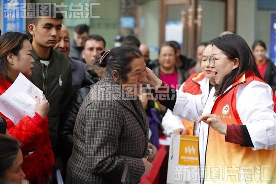 2024年3月3日,医护人员在洛浦县艾德莱斯购物商场为听力障碍人群免费带上助听器。