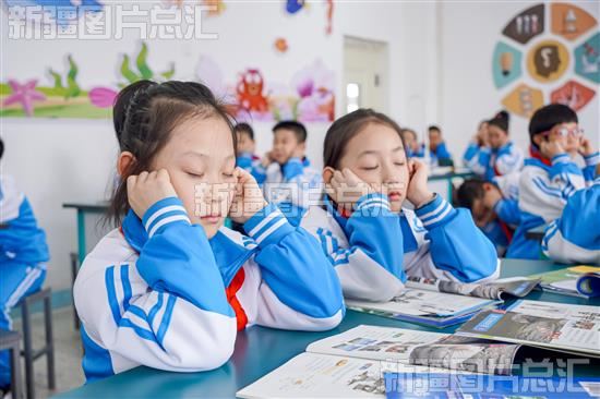 2024年3月1日,昌吉市第二小学学生做护耳保健操。
