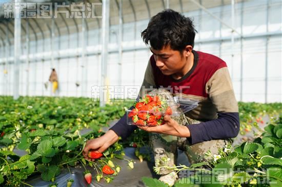 2024年3月3日,工作人员在哈密国家农业科技园区温室大棚里采摘草莓供应超市。