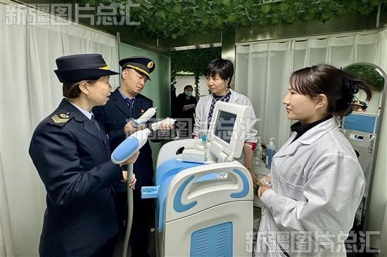 2024年3月6日,乌鲁木齐市天山区卫生健康委员会执法人员在CCMALL时代广场一家美容机构向工作人员做普法宣传。