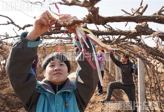 2024年2月29日,鄯善县鲁克沁镇赛尔克甫村村民固定葡萄藤。