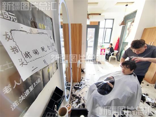 2024年3月11日,市民在乌鲁木齐市鲤鱼山北路一家理发店理发。