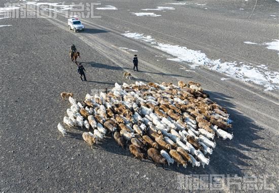 昌吉回族自治州北塔山边境牧场进入牧民春季转场季,驻守在此的新疆出入境边防检查总站昌吉边境管理支队乌拉斯台口岸边境派出所与辖区牧业连队成立了“警民护牧转场服务队”,帮助13户转场牧民群众运送物资,全程跟群放牧,护送牧民及近7000头牲畜安全到达春季牧场。