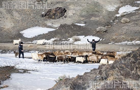 昌吉回族自治州北塔山边境牧场进入牧民春季转场季,驻守在此的新疆出入境边防检查总站昌吉边境管理支队乌拉斯台口岸边境派出所与辖区牧业连队成立了“警民护牧转场服务队”,帮助13户转场牧民群众运送物资,全程跟群放牧,护送牧民及近7000头牲畜安全到达春季牧场。