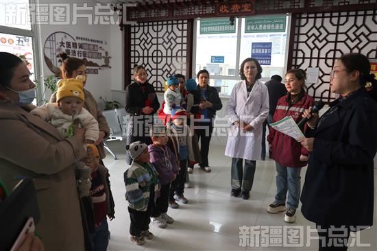 2024年3月12日,在乌什县阿克托海乡卫生院,工作人员给群众宣讲接种脊灰疫苗补充免疫的重要性和必要性。