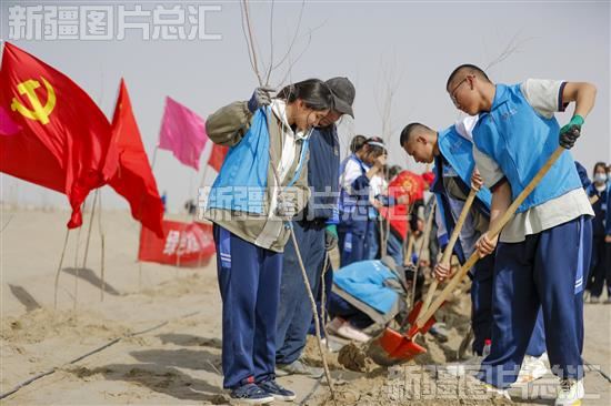 关键字:和田地区 洛浦县 杭桂镇 和佳新村 干部 群众 志愿者 学生 老师 戈壁荒滩 植树造林 植树