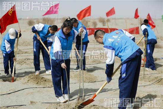 关键字:和田地区 洛浦县 杭桂镇 和佳新村 干部 群众 志愿者 学生 老师 戈壁荒滩 植树造林 植树
