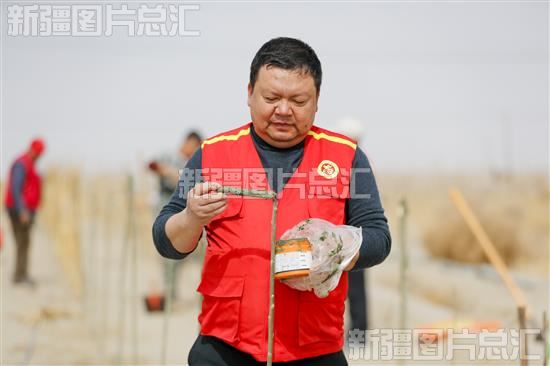 当日,洛浦县1万余名各族干部群众在杭桂镇和佳新村开展植树造林活动。大家们分工协作挖坑、放苗、培土、整平……一排排树苗迎风而立,让戈壁荒滩展现出勃勃生机。当天共植树226亩。今年洛浦县计划完成补植补造及新造林面积17604亩。