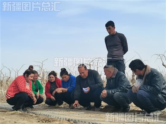 2024年3月11日,泽普县奎依巴格乡农技人员为农户讲解洋葱种植技术。
