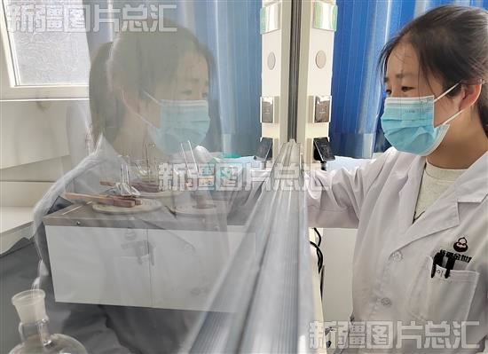 2024年3月18日,新疆金世康药业有限公司实验室工作人员在操作设备进行试验。