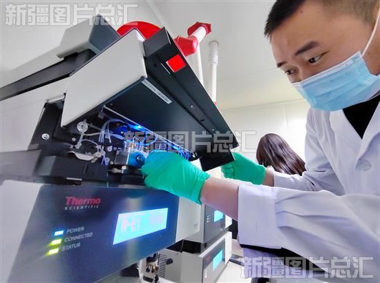 2024年3月18日,新疆金世康药业有限公司实验室工作人员在操作设备进行试验。