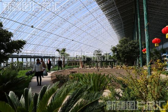 2024年3月18日,游客在位于阿勒泰市拉斯特乡的阿勒泰市吉林援疆现代农业博览园观赏南方植物。