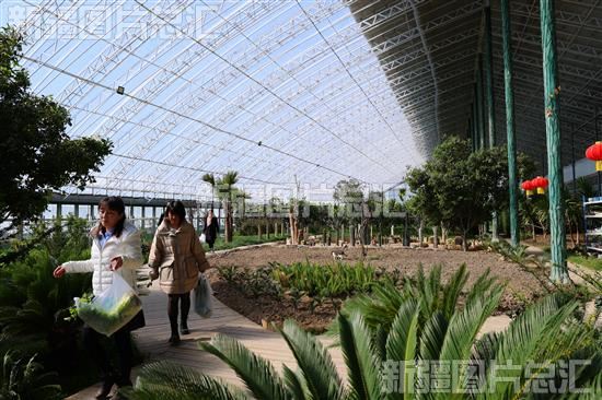 2024年3月18日,游客在位于阿勒泰市拉斯特乡的阿勒泰市吉林援疆现代农业博览园观赏南方植物。
