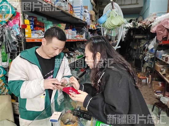 2024年3月21日,乌鲁木齐高新区(新市区)长春中路街道天津路社区工作人员向辖区商户普及“智高新”平台服务。