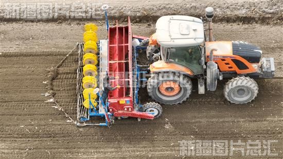 2024年3月20日,库尔勒市托布力其乡托布力其村村民在播种春小麦(无人机摄)。