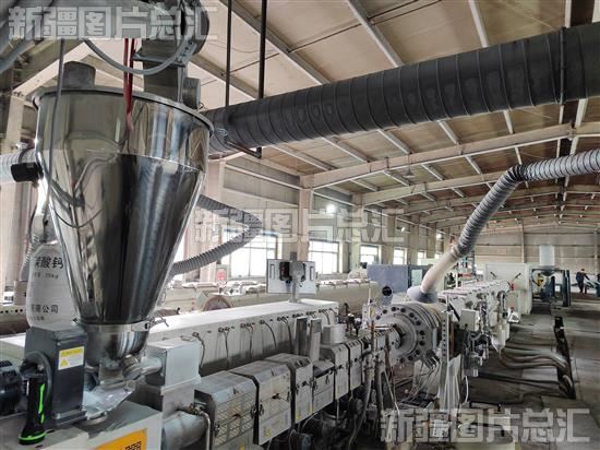 2024年3月22日,新疆普润节水科技开发有限公司工作人员在操控设备生产管道。