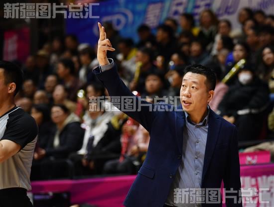 2024年3月13日,新疆女篮教练贾楠在场边指挥队员使用不同战术。