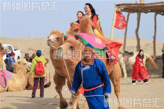 2024年3月23日,游客在博湖县境内的艾勒逊乌拉沙漠骑骆驼领略大漠风情。