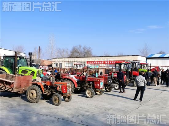 2024年3月25日,在沙湾市2024年度农业机械检验大泉乡检验点,农业机械排队候检。
