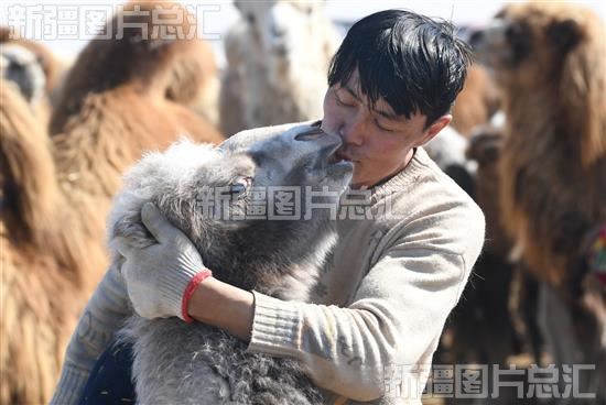 2024年3月26日,养驼户亲吻“驼宝宝”。