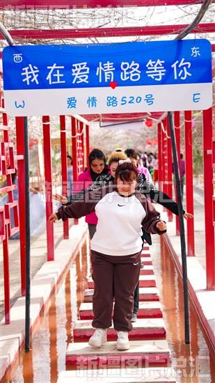 2024年3月27日,游客在巴楚县琼库尔恰克乡巴格托格拉克村 “爱情路”游玩。