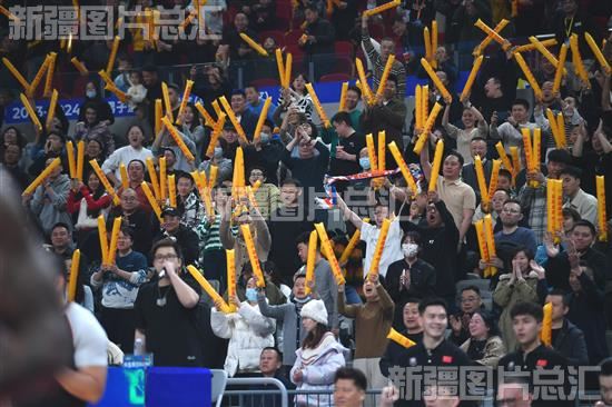 2024年3月10日,球迷为新疆男篮的精彩表现加油助威。