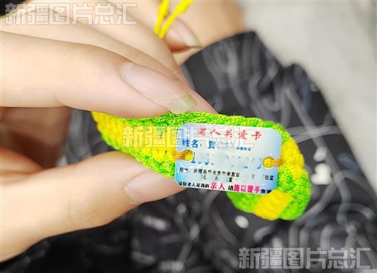 2024年3月4日,大学生仔细端详乌鲁木齐高新区(新市区)新时代文明实践站示范点志愿者制作的“老人关爱卡”手环。