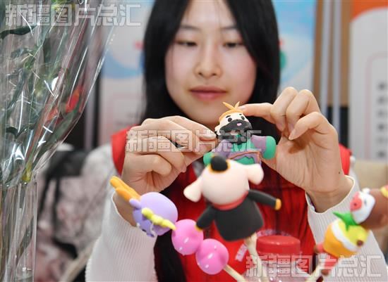 2024年3月4日,乌鲁木齐高新区(新市区)新时代文明实践站示范点志愿者制作精美饰品。