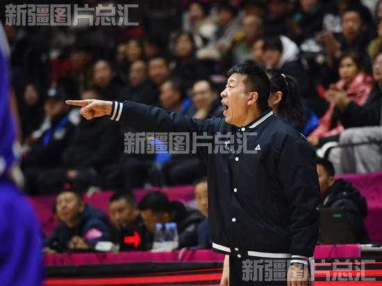 2024年2月27日,新疆女篮主教练贾楠在场外指挥球员正确跑位。