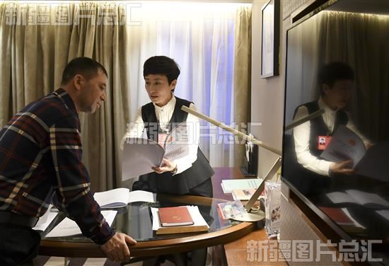 2020年1月5日,马燕(右)与其他代表一起讨论议案。