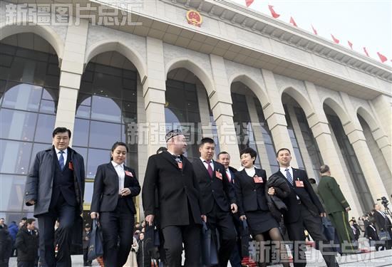 2020年1月6日,听取政府工作报告后,马燕(前排右二)等代表信心满怀地走出新疆人民会堂。