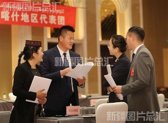 2020年1月7日,逄子剑代表在参加喀什地区代表团分组审议间隙,与其他代表热议政府工作报告。