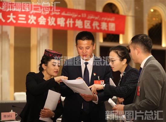2020年1月7日,逄子剑代表在参加喀什地区代表团分组审议间隙,与其他代表热议政府工作报告。
