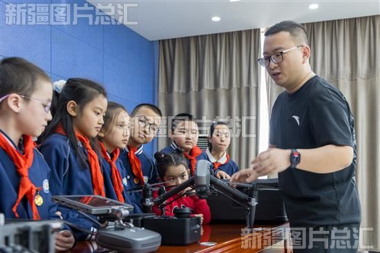 2024年3月20日,工作人员正在给学生介解拍摄天气的器材。