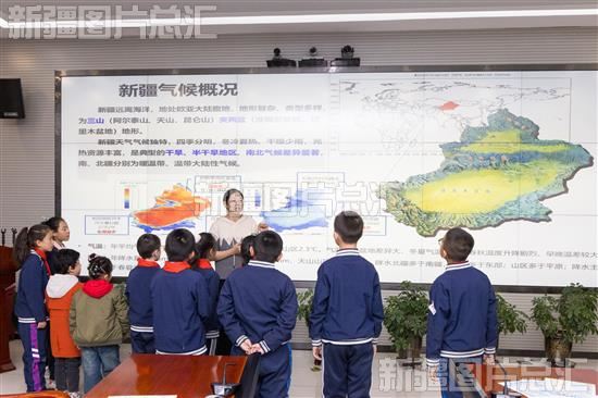 2024年3月20日,工作人员正在给学生们讲解新疆天气知识。