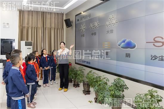 2024年3月20日,工作人员正在给学生们讲解新疆天气知识。